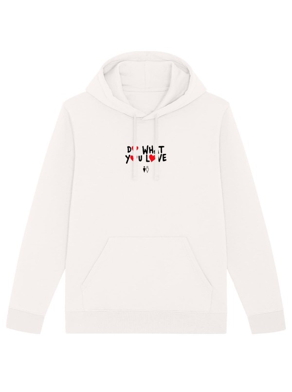 Felpa girocollo "Do what you love". Felpa Classic in 85% cotone biologico filato e pettinato, 15% Poliestere riciclato, 280 gsm con stampa Digitale diretta su tessuto.